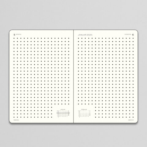 Wochenkalender und Notizbuch 2026 gepunktet