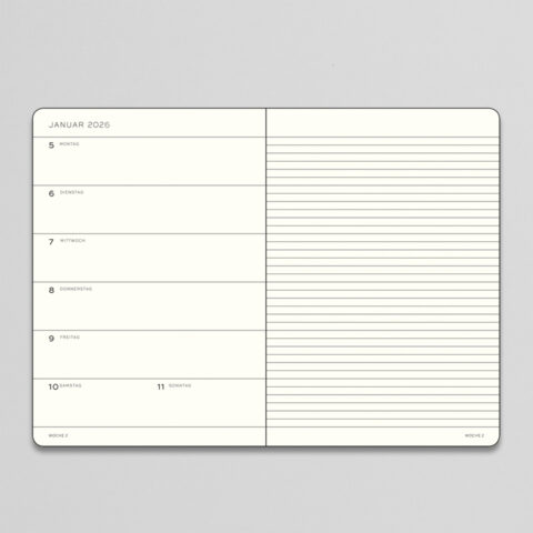 Wochenkalender und Notizbuch 2026 liniert / Hardcover