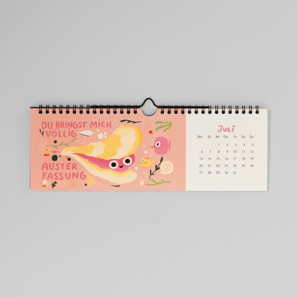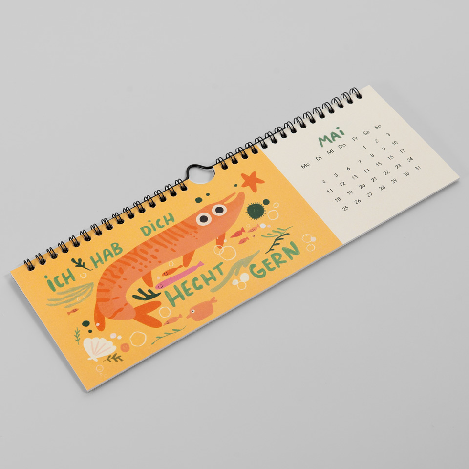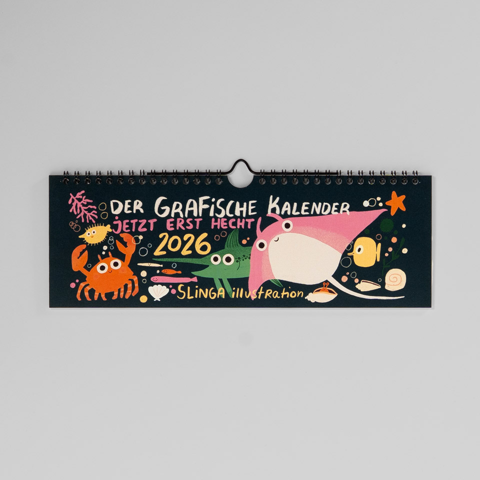 Jetzt erst Hecht! Der beliebte GraFische Kalender bringt dich auf liebevolle Art dorsch’s ganze Jahr 2026! 12 freundliche Wasserlebewesen machen dir Komplimente und feuern dich an! 2026 kann kommen!