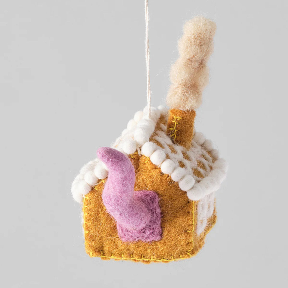 Filzanhänger – Katze im Lebkuchenhaus