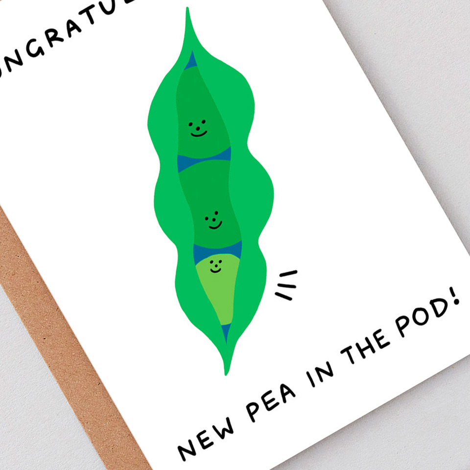 Eine neue Erbse in der Schote. Welch super süße Grußkarte, um ein neues Wesen auf der Welt zu begrüßen.