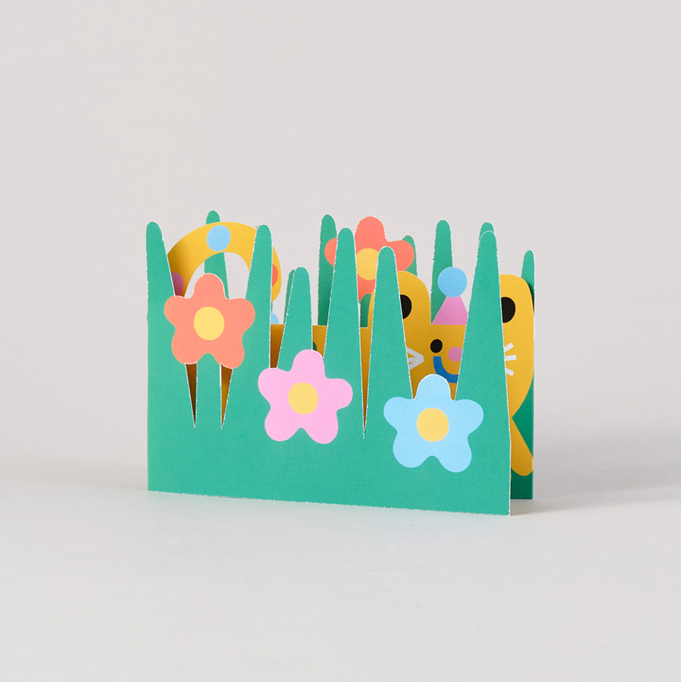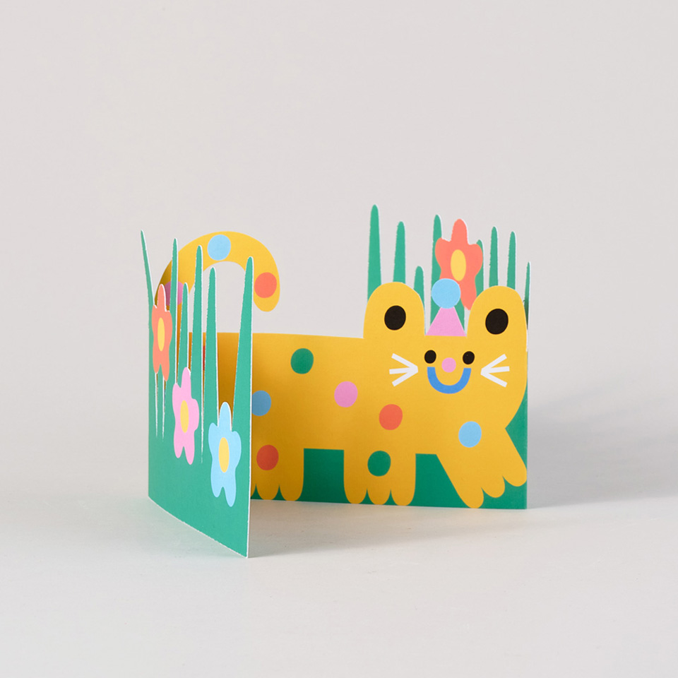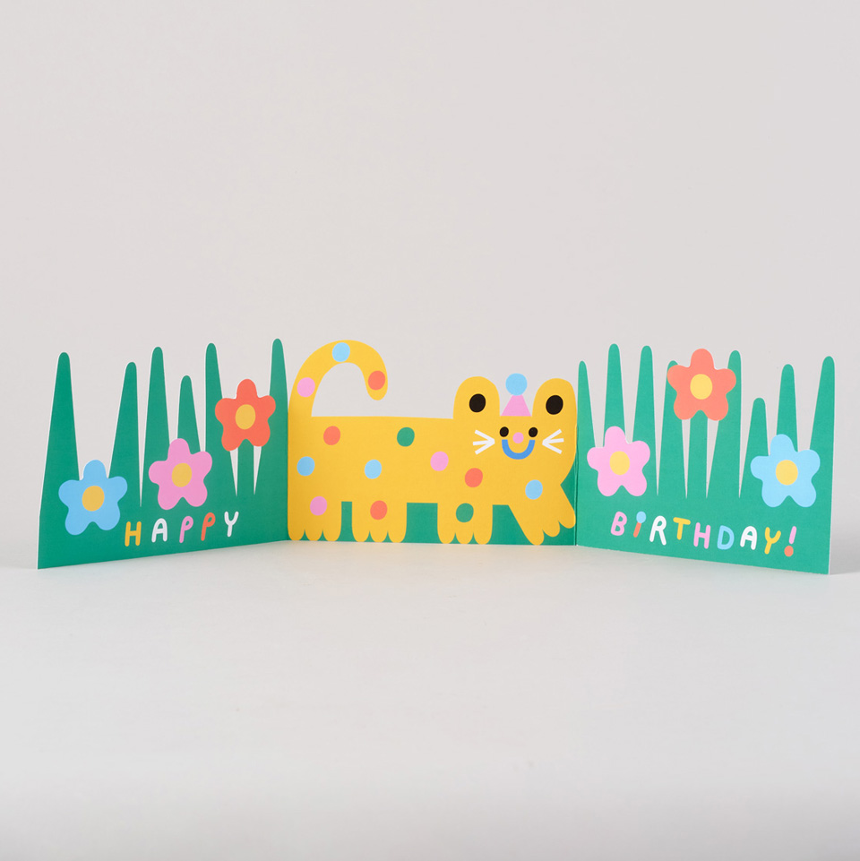 Na wer versteckt sich denn hier im hohen Gras? Ein gepunktetes Geburstagskätzchen mit gaaaanz viel Platz für deine Botschaften.