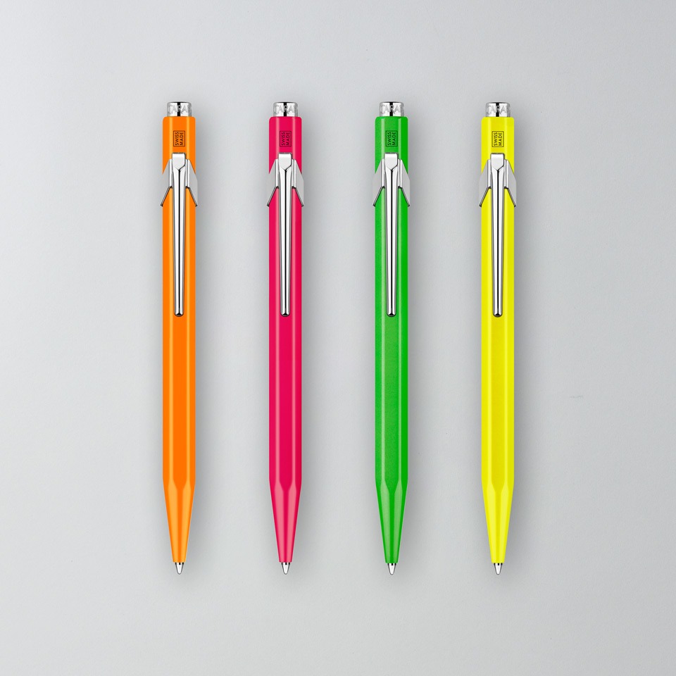 Seit 1969 ist die 849er-Kugelschreiberserie von Caran d’Ache der ideale Begleiter im Alltag. Mit seiner sechseckigen Form und dem Schaft aus Aluminium liegt er sehr gut in der Hand. Mit den grellen, Neonfarben in pink, orange, gelb und grün der »PopLine« hast du einen modernen Klassiker, den du immer gut in der Tasche oder auf dem Schreibtisch des Kollegen findest. Die besondere Mine steht für ein weiches, flüssiges Schreibgefühl. Die Stahlspitze sorgt für einen sauberen Strich ohne zu Verschmieren. Zudem ist die Mine sehr ergiebig – 600 beschriebene A4 Seiten garantiert Caran d’Ache. Na dann: frohes Schreiben!