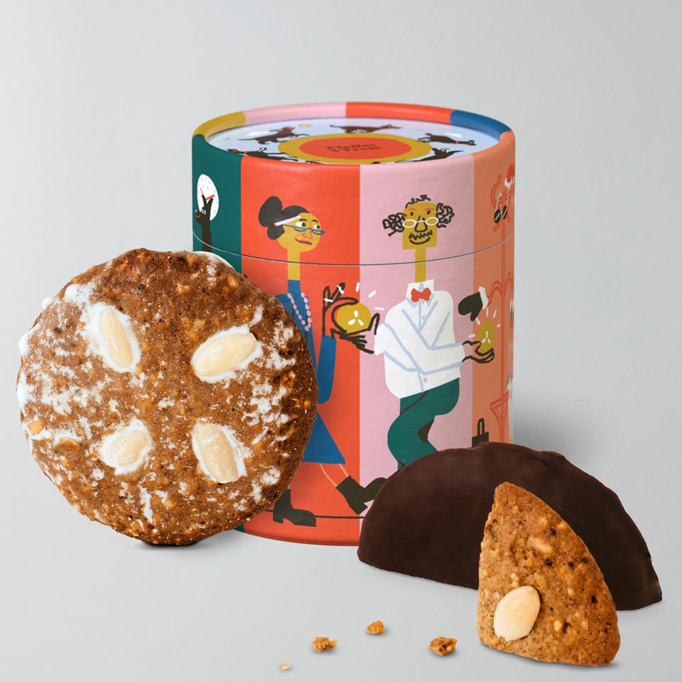 Mit liebevoll gezeichneten Charakteren des Londoner Illustrators Alec Doherty auf einer limitierten Kartonbox, sind diese 5 Original Elisenlebkuchen in Bio-Qualität das perfekte Geschenk, um KollegInnen, Partnern oder KundInnen buchstäblich den Kopf zu verdrehen. Und das Beste daran? Die Kartonbox ist bereits die perfekte Geschenkverpackung. Auf’s Verpacken kannst du also verzichten.
