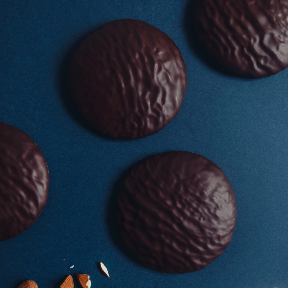 ca. 390g, 5 vegane Elisen-Lebkuchen: 2x Natur, 2x Dunkle Schokolade, 1x Zuckerguss