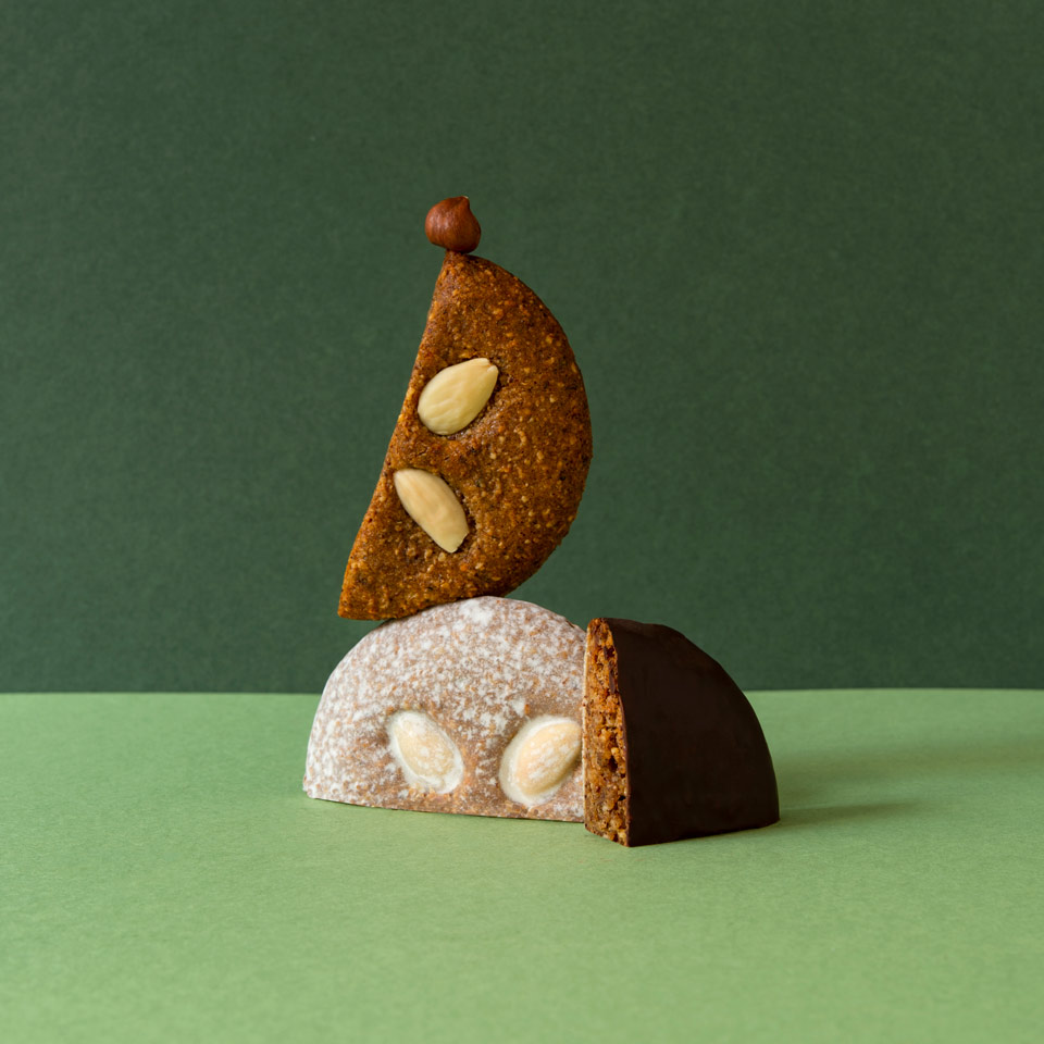 Dieser feine Elisen wird in der Nähe von Nürnberg entfernt in einer Famlienbäckerei jede Woche frisch gebacken und in kompostierbare Bio-Folie gehüllt. Die Zutaten werden fair bezahlt und wann immer möglich, lokal bezogen – teilweise aus langjährigen, festen Handelsbeziehungen zu lokalen Landwirten.