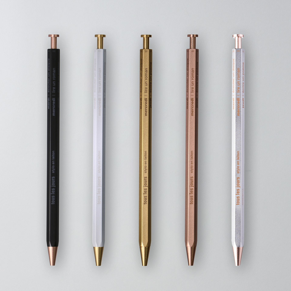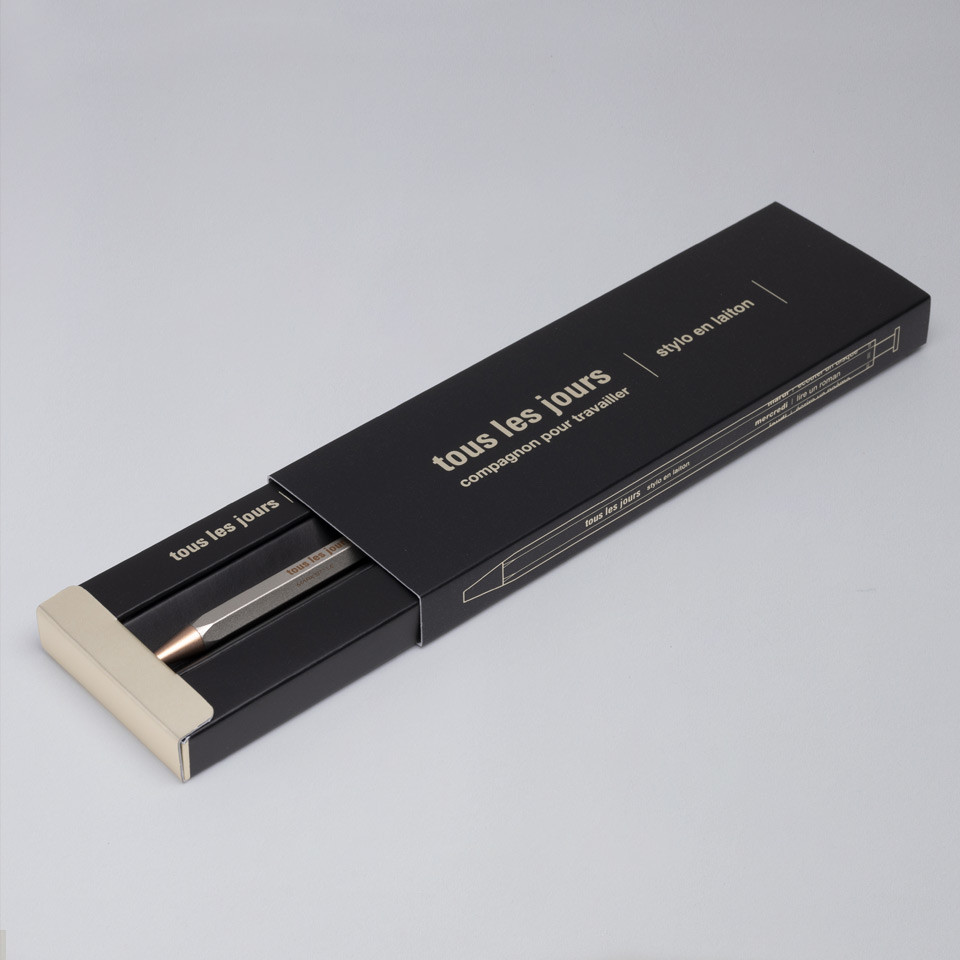 Dieser Gelschreiber hebt den allseits beliebten »Tous les Jours« auf ein neues Level. Denn dieser besteht nicht aus Holz, sondern aus Messing und liegt durch sein Gewicht noch besser in der Hand. Und es gibt noch einen Unterschied: Er beherbergt keine Kugelschreibermine, sondern eine Gelmine! Der Minenhersteller Ohto sorgt mit seiner Technologie »Strong Needle Point« trotz der extrem dünnen Mine und dank der sehr weichen Tinte für ein weiches Schreibgefühl. Wenn du klein und dabei leserlich schreiben willst, bist du hier sehr gut aufgehoben.