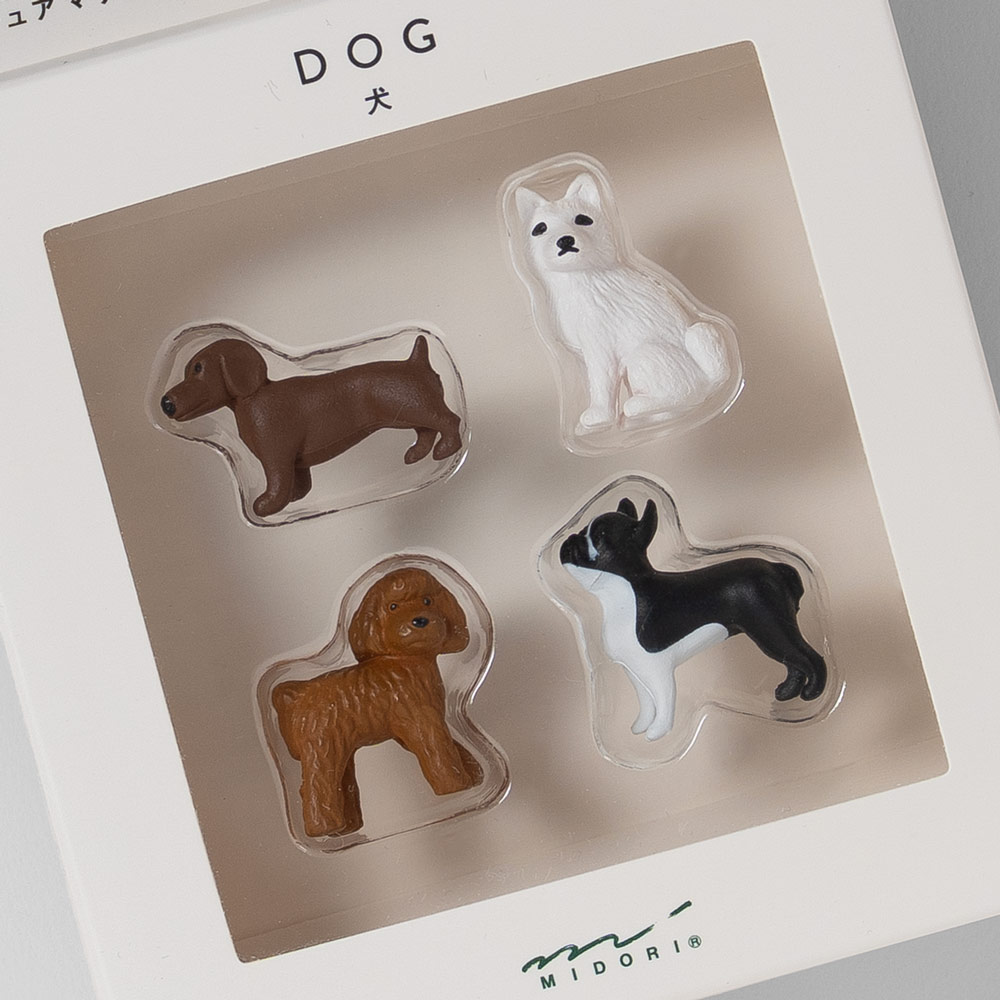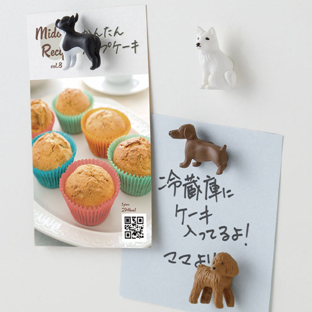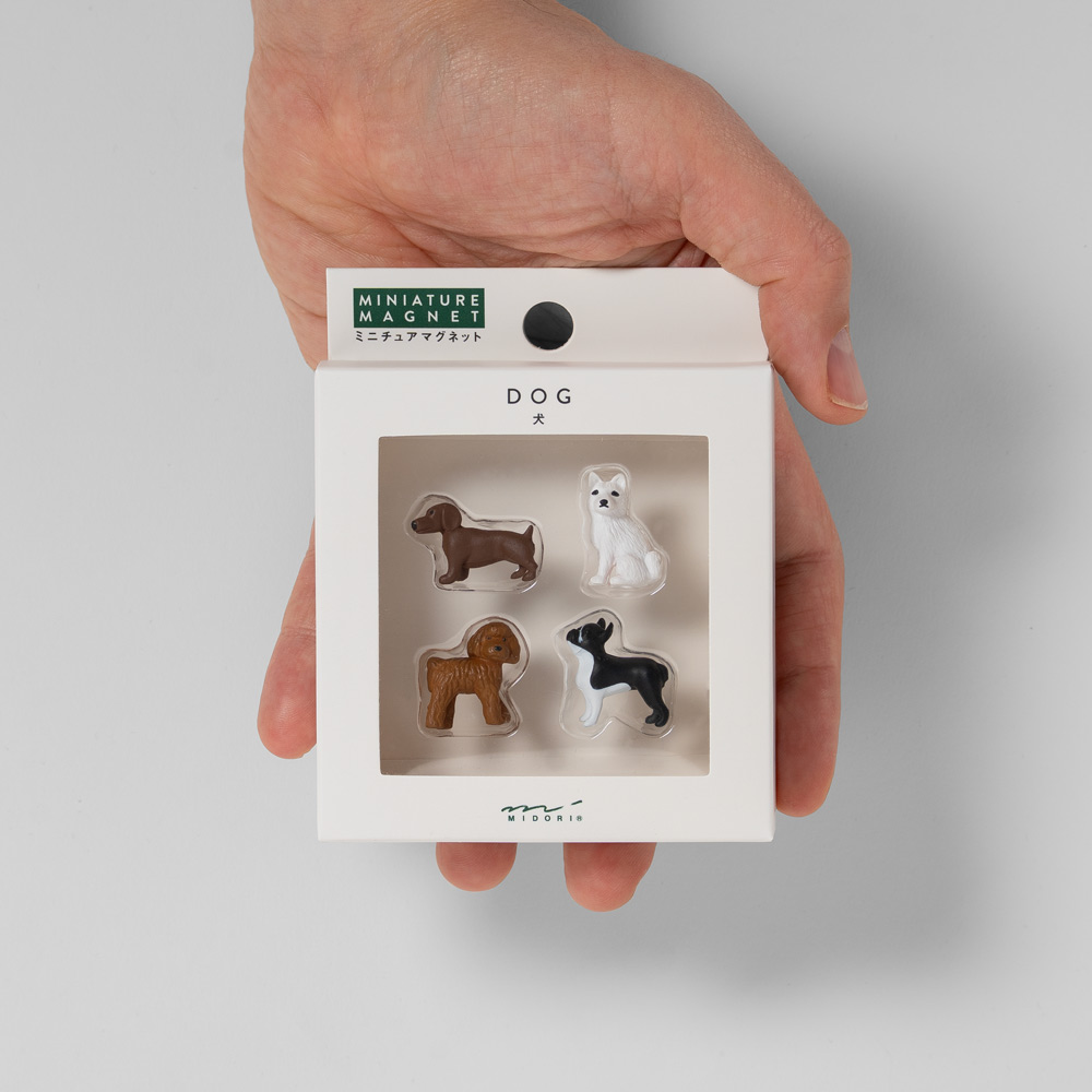 Diese hochwertigen Magnete vom renommierten japanischen Schreibwarenhersteller Midori begeistern mit ihrem niedlichen Hunde-Design und ihrer starken Haftkraft. Mit dabei: ein Pudel, eine Bulldogge, ein Dackel und vermutlich ein Spitz – vier liebevoll gestaltete Motive für alle Hundeliebhaber. Ob Einkaufsliste, Postkarte, Foto oder kleine Zeichnung – diese charmanten Begleiter halten alles zuverlässig fest.