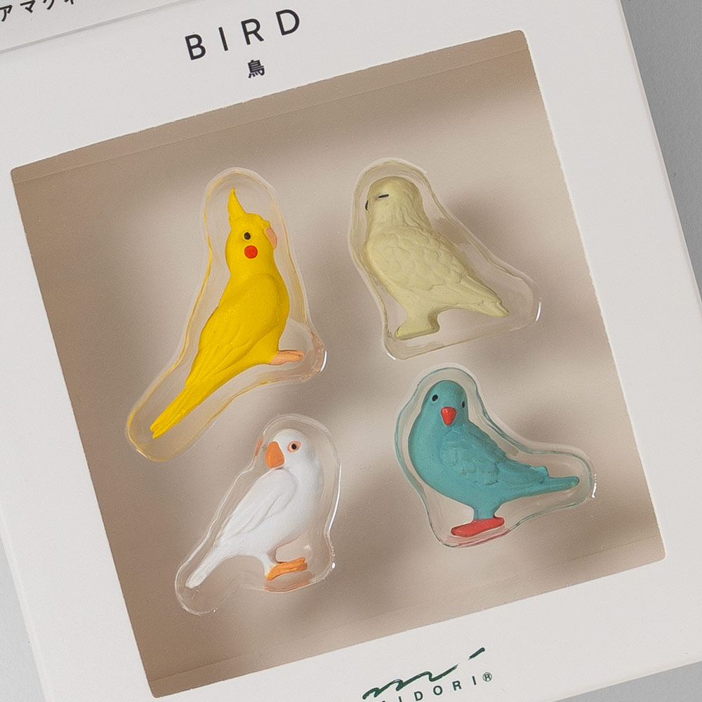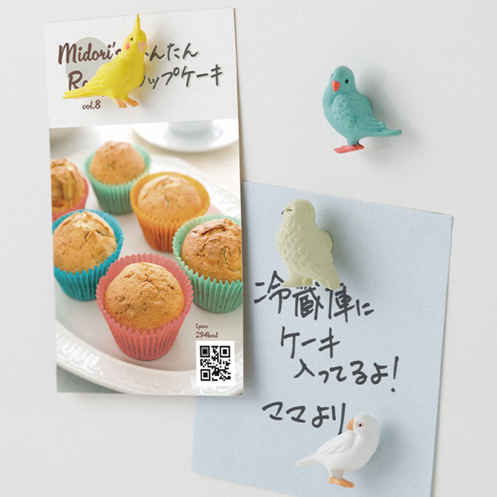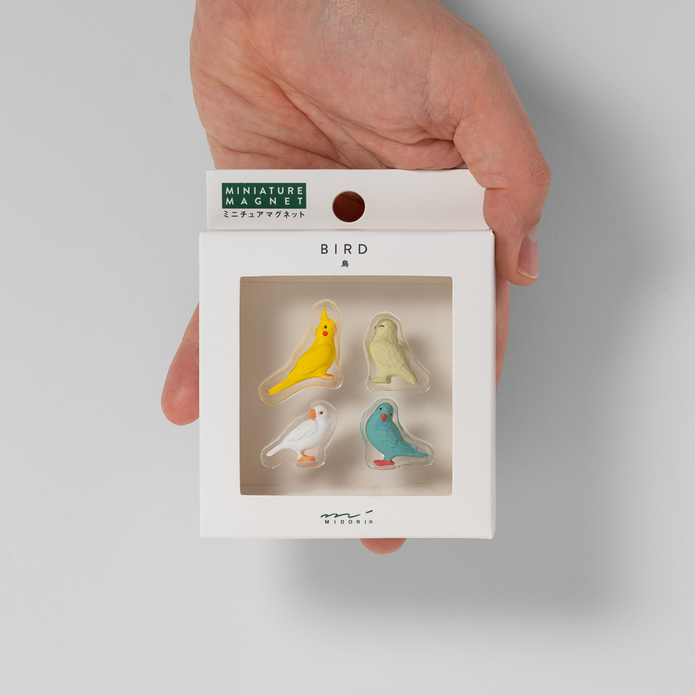 Diese hochwertigen Magnete vom renommierten japanischen Schreibwarenhersteller Midori begeistern mit ihrem niedlichen Vogel-Design und ihrer starken Haftkraft. Mit dabei unter Anderem ein Nymphensittich, eine Eule und ein Wellensittich – viel liebevoll gestaltete Motive für alle Vogelliebhaber. Ob Einkaufsliste, Postkarte, Foto oder kleine Zeichnung – diese charmanten Begleiter halten alles zuverlässig fest.