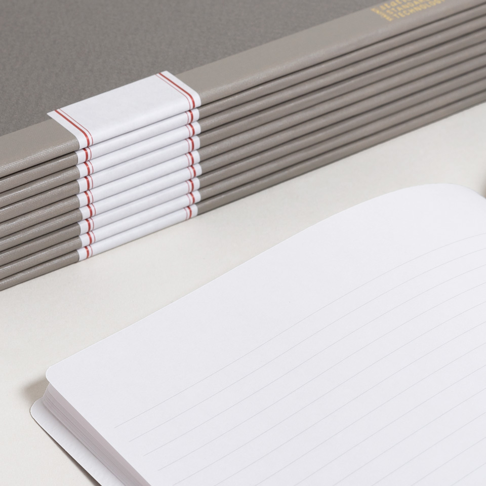 Hierbei handelt es sich um ein schlichtes Notizbuch mit inneren Qualitäten. Das hochwertige, glatte 81,4 g-Papier ist mit seinen zarten grauen Linien perfekt für Schreibgeräte wie Bleistifte, Kugelschreiber und Füllfederhalter. Die Papiersorte »Gokanshi« verleiht dem Einband eine ausgeprägte Haptik. Der Umschlag ist in sechs schönen Farben erhältlich, so dass das Notizbuch für verschiedene Themen oder für verschiedene Zwecke verwendet werden kann. Wir finden die Etiketten am Bund zum Beschriften sehr nützlich.