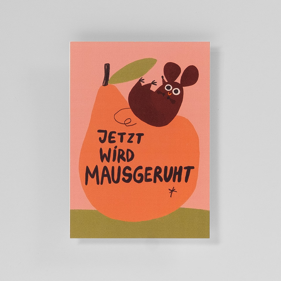 Kleine Maus, große Entspannung! Diese Postkarte zeigt, wie’s geht: Gemütlich auf einer Birne liegend, das Leben genießen und einfach mal nichts tun. Ein liebevoller Gruß für alle, die eine Pause verdient haben – zum durchatmen, schmunzeln und ausruhen.